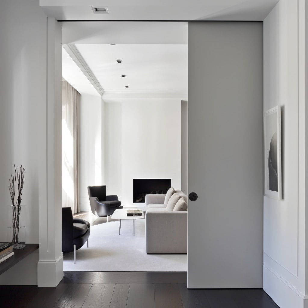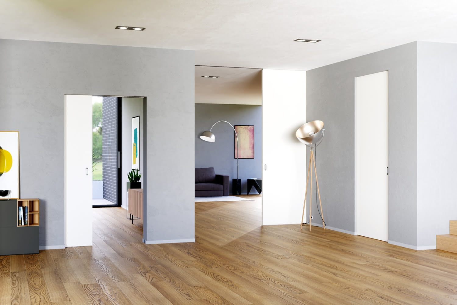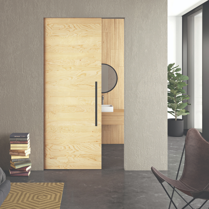 Classic interior doors cost you a lot of usable living space. Due to the opening radius of the door leaf, you lose an average of 13,5 Sq ft of usable space per interior door. When planning your rooms, take into account the swing area of the interior doors. In the worst case scenario, your room doors will regularly hit objects in the room and damage the door panel. Our Pocket doors in the wall elegantly solve this problem and ensure that you can use your room space much better. With WINGBURG Pocket doors, you can plan rooms in a completely new way and save money.